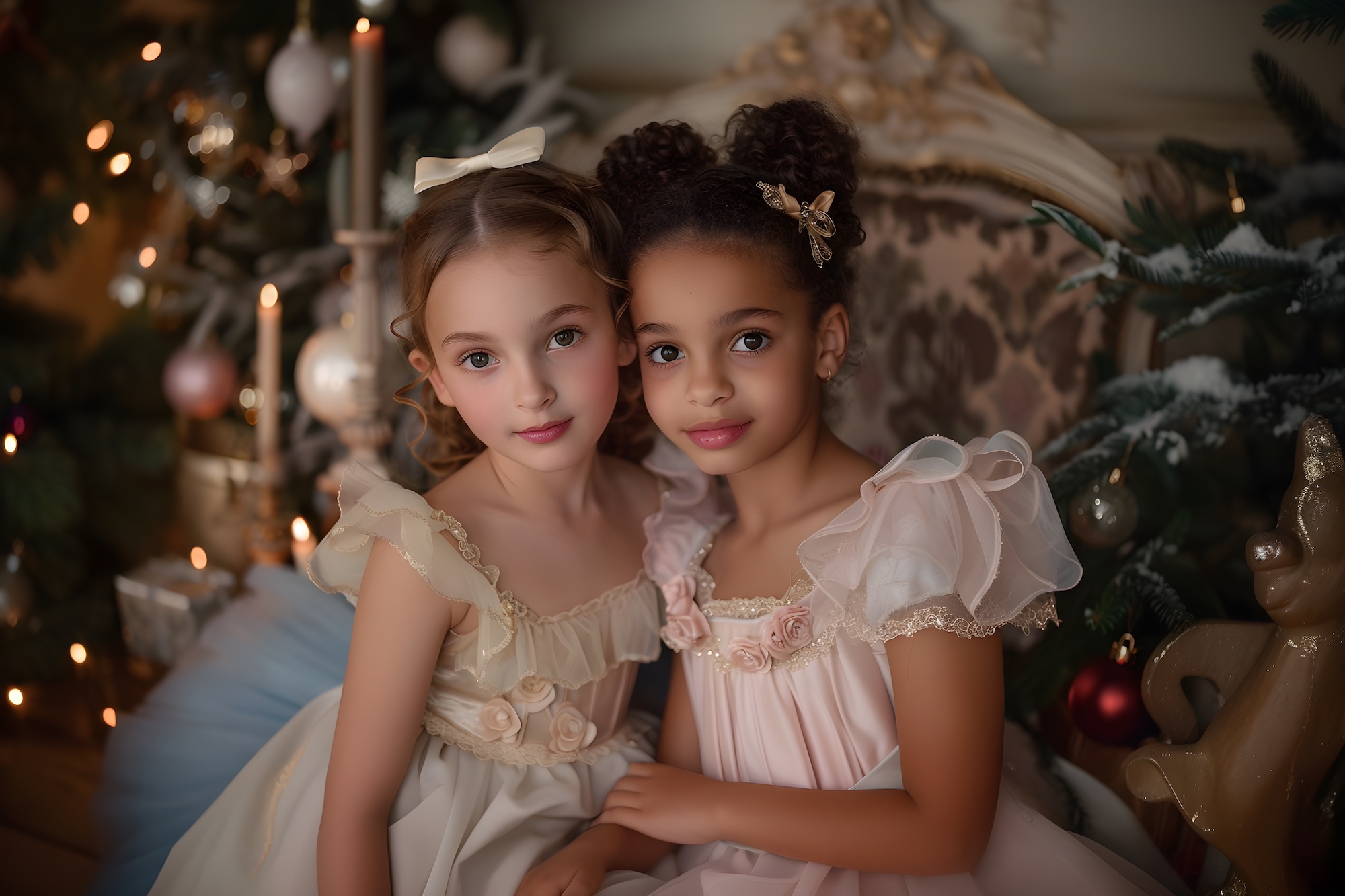 This is not about loud novelty outfits or fast fashion glitter. This is luxury kids Christmas fashion rooted in heirloom charm. It is a storybook Christmas aesthetic for children where ribbons, rosettes, and ruffles become the language of celebration, and Regency glamour is translated into silhouettes that children can actually wear, move in, and remember.