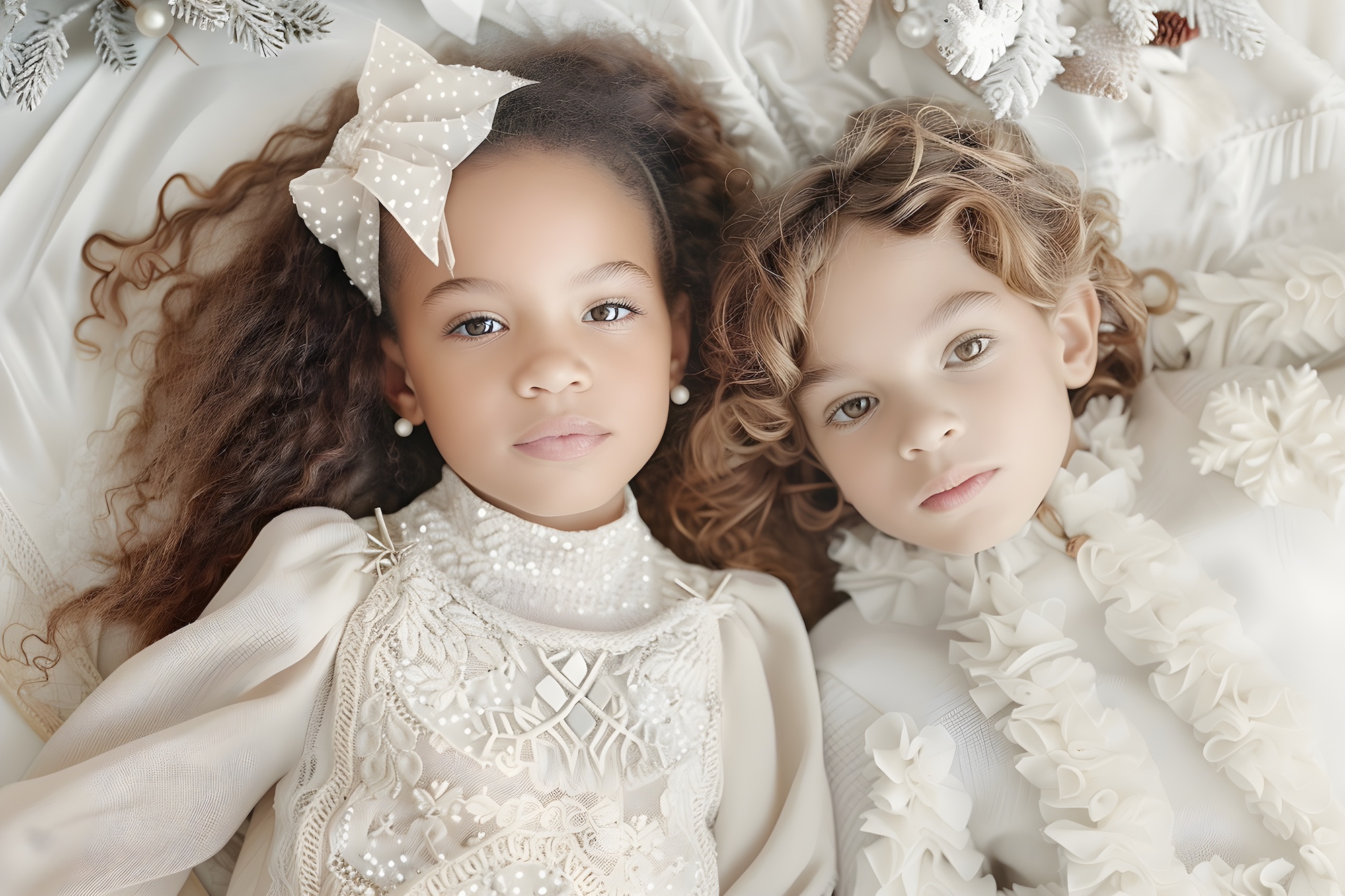 A true storybook Christmas aesthetic for children depends on fabric as much as silhouette. Texture is what makes the look feel heirloom and editorial.