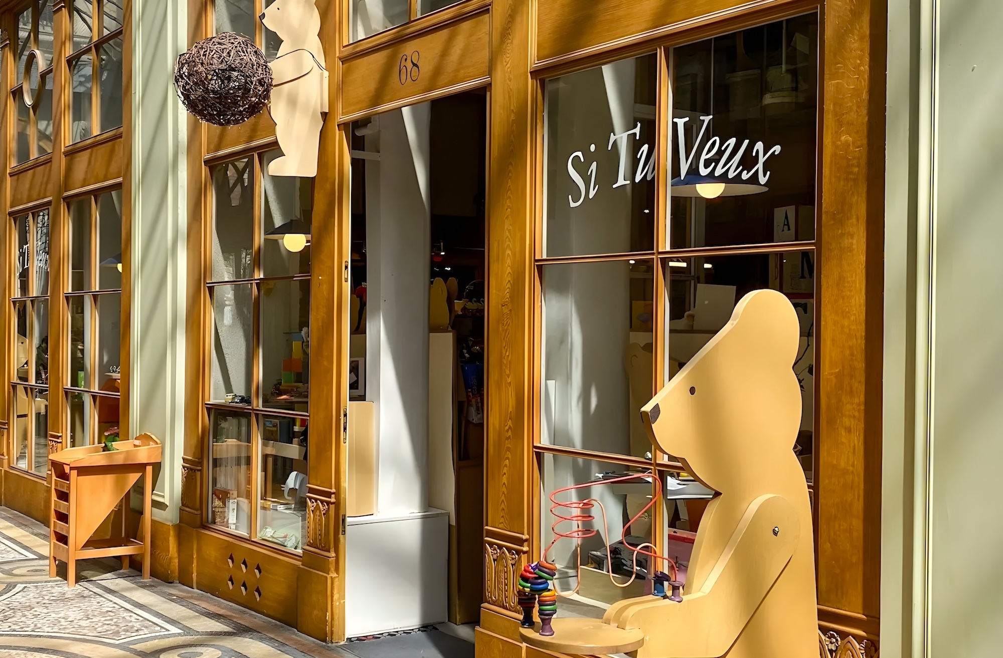 Si Tu Veux, located at 68 Galerie Vivienne 75002 Paris inside one of the city’s most picturesque passages, remains a sanctuary for wooden toys puzzles puppets and beautifully illustrated books.